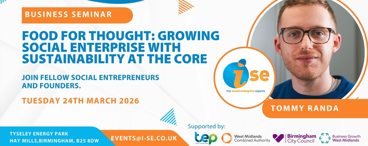 Join iSE and ourselves on Tuesday 24th March 2026 at Tyseley Energy Park for ‘FOOD FOR THOUGHT: Growing Social Enterprise with Sustainability at the Core’.
